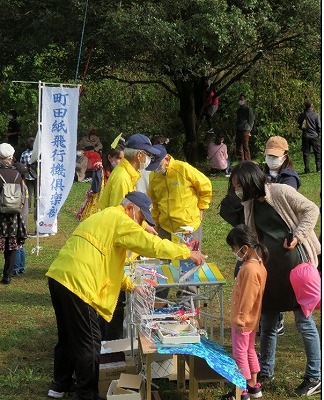 当倶楽部も参加12団体の一つとして参加しました。前日の雨で、芝生がまだ濡れていることもあり紙飛行機は製作中心で対応しました。幸い多くの方に来て頂き大盛況でした。ありがとうございました。